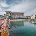 There are 46 rooms comprising a balcony and a seating area. They come with a flat-screen TV with satellite channels, as well as such comforts as central heating. The view of the sea and the elegant furniture are provided there. The bathroom features a separate toilet and a shower, along with a hair dryer and a shower cap.